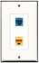 RiteAV - 1 Port Cat5e Ethernet Blue - 1 Port Cat5e Ethernet Yellow Wall Plate Decora White