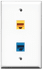 RiteAV - 1 Port Cat5e Ethernet Blue - 1 Port Cat5e Ethernet Yellow Wall Plate White