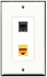 RiteAV - 1 Port Phone RJ11 RJ12 Black - 1 Port Cat5e Ethernet Yellow Wall Plate Decora White
