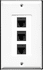 3 port cat6 keystone jack coupler decora type (2 piece) wall plate in bright white color.