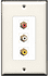 3 port COMPOSITE RCA WALL PLATE - RED WHITE YELLOW (FEMALE COUPLER SCREW IN TYPE)
