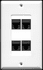 4 port cat6 keystone jack coupler decora type (2 piece) wall plate in bright white color.