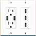 RiteAV 15 Amp 125V Power Outlet (2 USB Charger Receptacle) 3 Hdmi Wall Plate