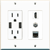 RiteAV 15 Amp 125V Power Outlet (2 USB Charger Receptacle) Hdmi Coax Shielded Cat6 Wall Plate White